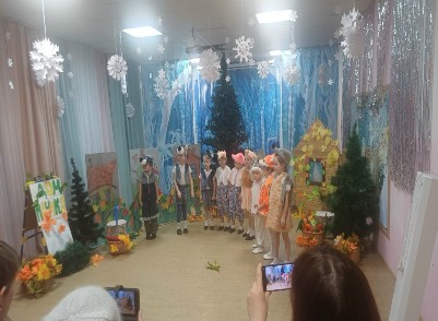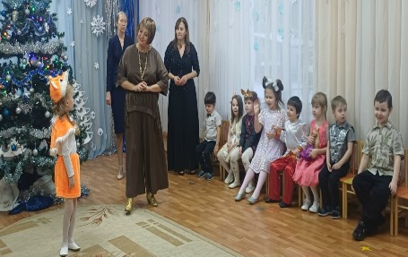 Разноцветные, сверкающие гирлянды и ярко украшенная ёлочка принесли детям ощущение чуда. С самого начала представления сказочные герои увлекали детей в волшебный мир сказки. Дети окунулись в праздничную атмосферу приключений, поучаствовали в интересных конкурсах. С появлением Деда Мороза начался настоящий праздник с песнями и танцами, хороводами вокруг ёлки.